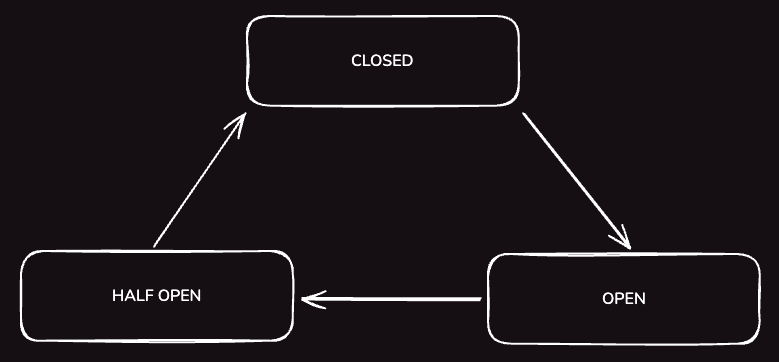 The circuit breaker operates in three distinct states, each serving a specific purpose in the failure detection and recovery process: